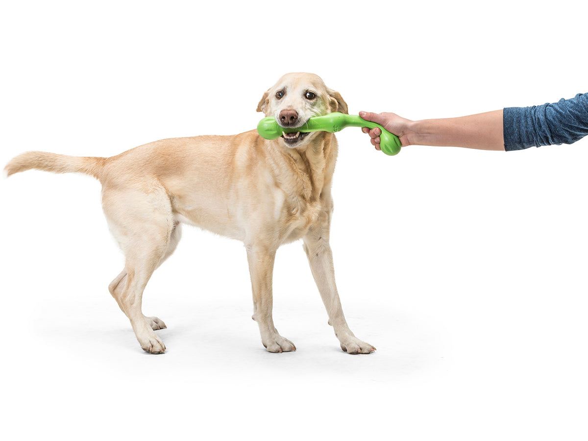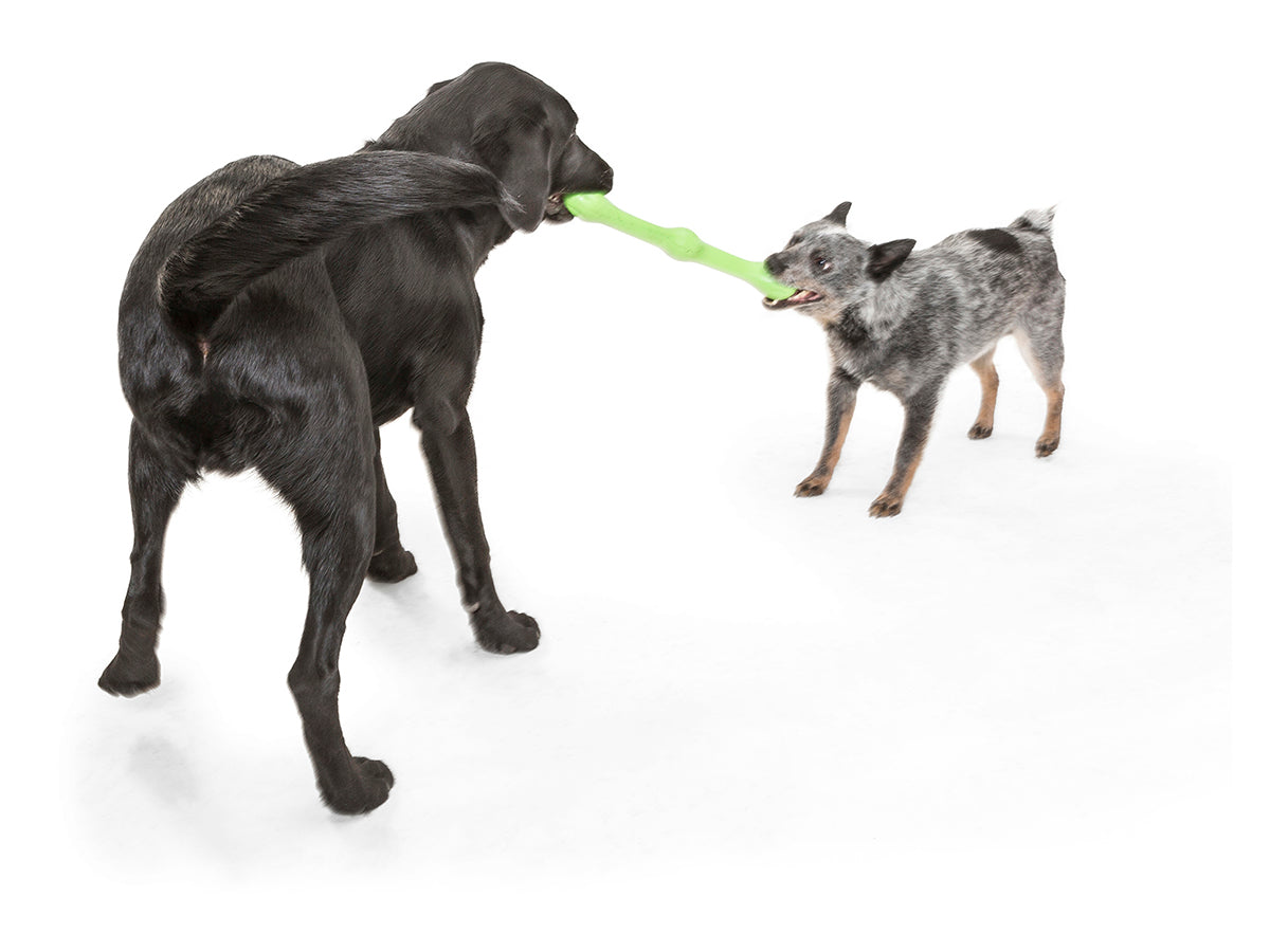A fetching “stick” so wonderfully bendy and squishy that humans like to play with it almost as much as dogs do! Zwig combines shapes and textures to create an irresistible chew-feel with a bouncy action that keeps going even when dogs are just carrying it around (which they love to do). It’s easy for even pups or senior dogs to grasp by mouth or hold between the paws while chewing. Made of our proven and much-loved Zogoflex, Zwig has a hollow center making it lightweight and durable for moderate and persistent chewers who like the springy resistance of a more flexible chew toy. Measures 13.75"